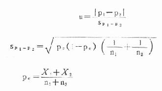以上公式中:P1,P2为两个样本率