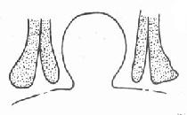 8.腭前部裂隙的修补:采用两侧粘骨膜作一瓦合组织瓣进行修补。