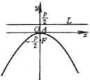(极坐标方程,极点位于焦点F上,极轴与抛物线的轴重合,背向顶点) |