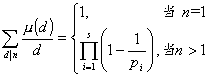 2°  μ(n)为积性函数,但非完全积性函数.