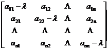 where I is a unit matrix of order n . The determinant | A - λ I | is called the characteristic polynomial of the matrix A , denoted as